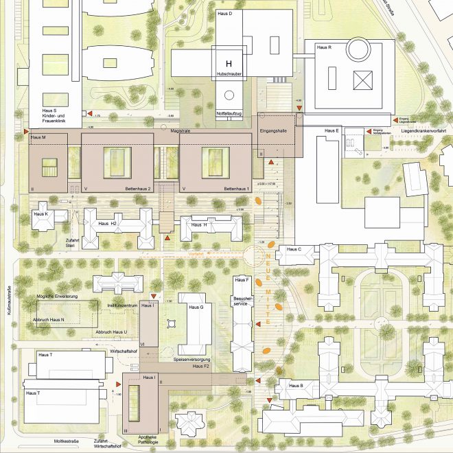 Die Stärkung der Durchlässigkeit in Nord- Südrichtung durch den Campus des Klinikums unterstützt diese Verknüpfung.