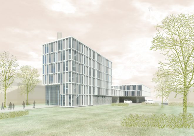 Der Campus des Städtischen Klinikums in Karlsruhe wird geprägt durch zwei unterschiedliche Bereiche, die ohne Dialog zueinander stehen. Einerseits das historische Ensemble mit starkem gestalterischen Zusammenhang und ausgeprägter Identität. Andererseits die später angefügten Ränder als eigenständige Bausteine, die jeweils auf sich und Ihre Funktion bezogen sind, ohne erkennbaren städtebaulichen Zusammenhang mit der historischen Bebauung.