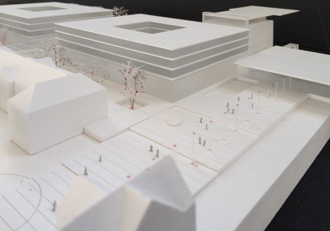 Die Neubauten liegen jeweils an der Schnittstelle zwischen dieser historischen und der später ergänzten Bebauung und nutzen die Chance, diese beiden Bereiche zu einem harmonischen Gebäudeensemble zu verknüpfen. Dabei werden Bezüge zur historischen Bebauung und Axialität, zu vorhandenen Baukörperfluchten, zur Körnigkeit der Bestandsbauten und zu Baumassen und Gebäudehöhen aufgenommen und fortgeführt.