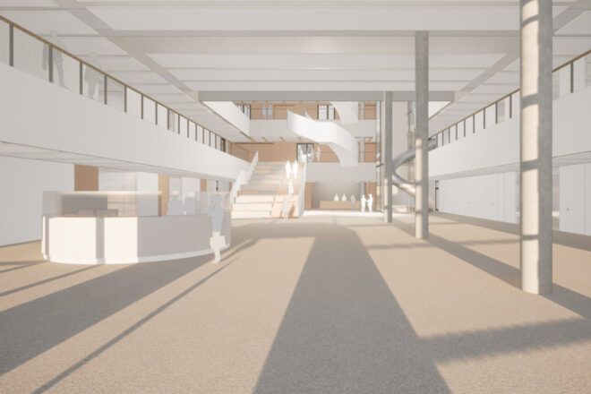 Das SAMSON Forum wird 86 Büros, eine Cafeteria mit Terrasse und ein Auditorium für größere Veranstaltungen mit bis zu 600 Personen beherbergen. Kleinere Veranstaltungen finden direkt im Atrium statt.