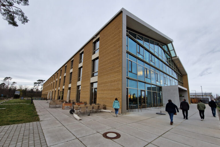 - Klimaneutrales Gebäude mit Stampflehmfassade