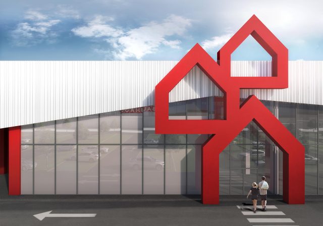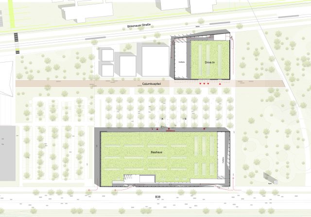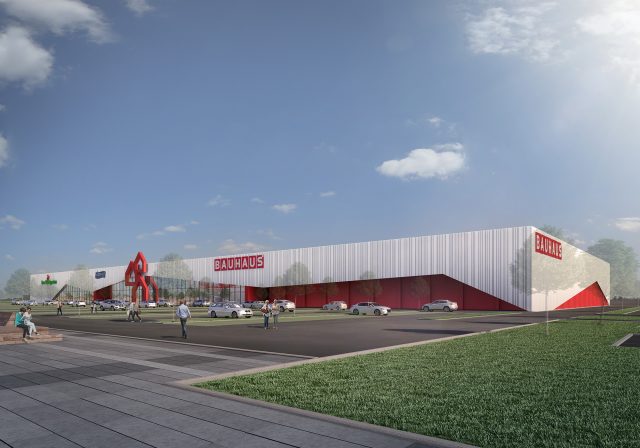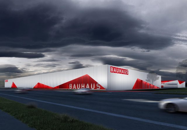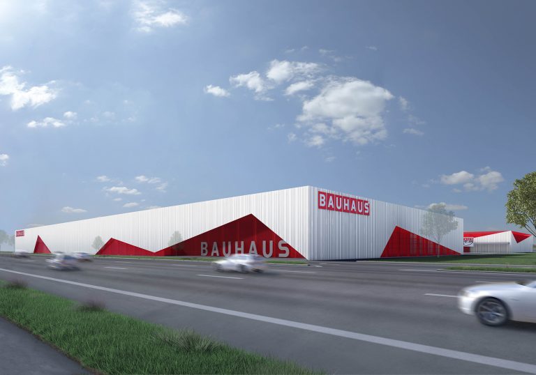 Das zeichenhafte Bauhaus-Logo in Form gestapelter Häuser ist das maßgebliche Erkennungszeichen der Marke Bauhaus. Es ist daher nur konsequent, ein ebenso zeichenhaftes Fassadenkleid zu entwickeln, das in seiner Wahrnehmung keiner typischen einfachen Gewerbeimmobilie entspricht und in seiner Zeichenhaftigkeit in den Stadtraum hineinwirkt.