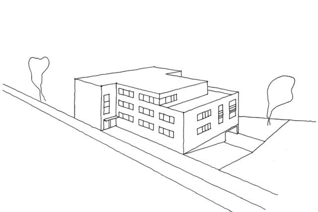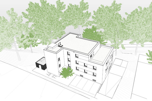 Die neue Bebauung setzt am östlichen Ortseingang von Baden-Baden Oos ein der Umgebung angemessenes Zeichen. Sie entwickelt sich aus der vorhandenen Struktur und Körnigkeit der Umgebung und respektiert den Bestand.