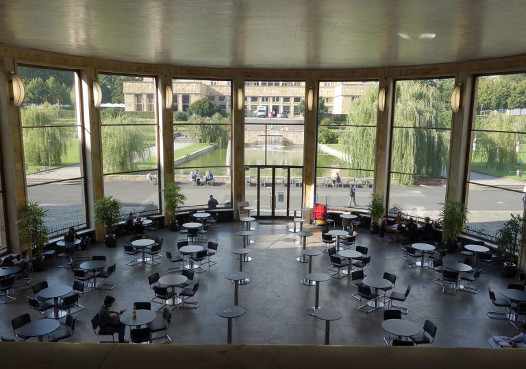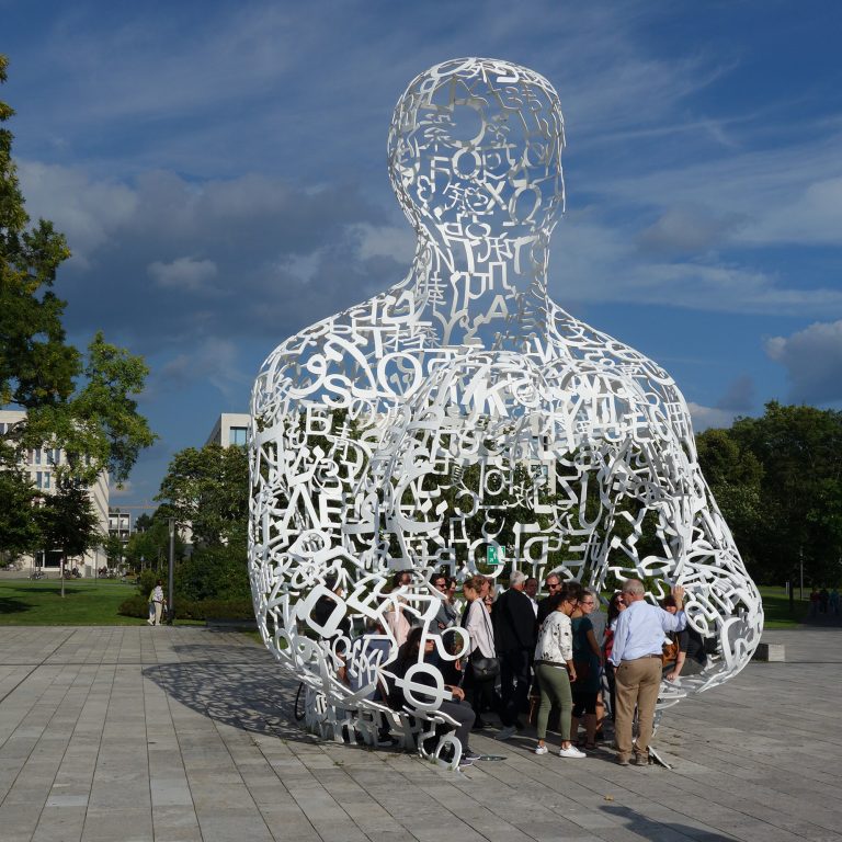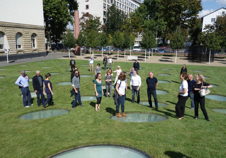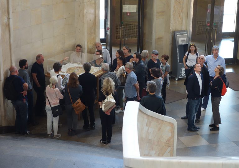 Architekturführung rund um das Gebäudeensemble der EZB, bestehend aus der denkmalgeschützten Großmarkthalle, dem Verbindungsbauwerk und den gläsernen Doppeltürmen, Erinnerungsstätte an der Frankfurter Großmarkthalle