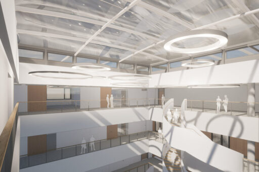 Das SAMSON Forum wird 86 Büros, eine Cafeteria mit Terrasse und ein Auditorium für größere Veranstaltungen mit bis zu 600 Personen beherbergen. Kleinere Veranstaltungen finden direkt im Atrium statt.