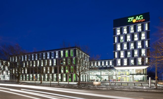 Die Gebäudevolumina entwickeln sich aus funktionalen und städtebaulichen Anforderungen. Die so entstandene „Skulptur“ wird mit einer einheitlichen Fassade überzogen, die das Gebäudeensemble zusammenfasst. Der siebengeschossige Turm markiert als weithin sichtbares Zeichen den „Energiestandort Heilbronn“.