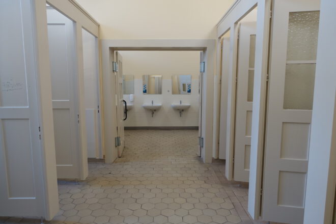 Der Ausbaustandard wurde mit dem Amt für Hochbau und Gebäudewirtschaft abgestimmt. Bodenbeläge und Akustikdecken wurden erneuert. Ein 2. baulicher Rettungsweg wurde in allen 3 Geschossen vorgesehen.