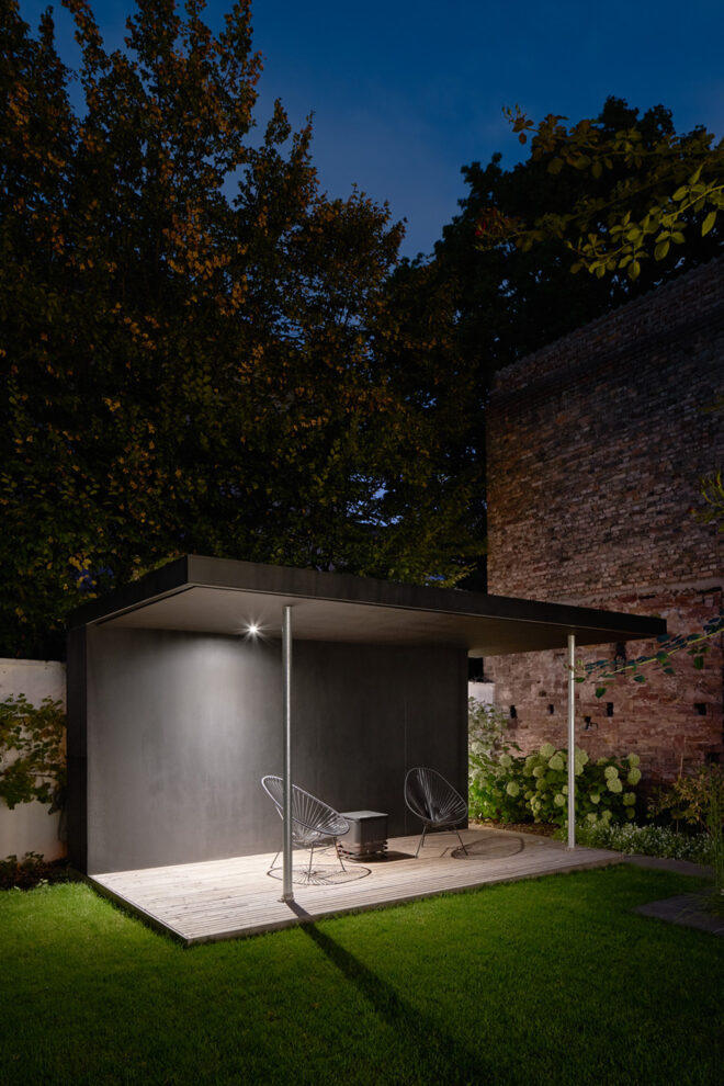 wurde eine grüne Oase mit üppiger Bepflanzung und Gartenpavillon geschaffen.