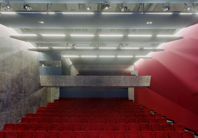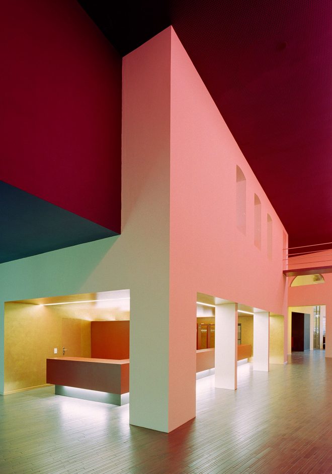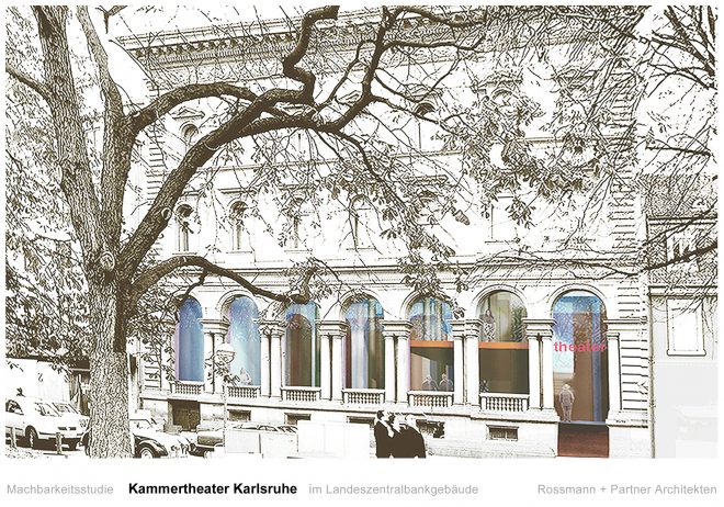 Umbau und Erweiterung des denkmalgeschützten Geschäftshauses mit Büroeinheiten, Sprachenschule, Restaurant und Kammertheater mit 250 Sitzplätzen im Zentrum von Karlsruhe.