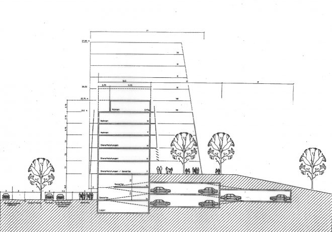 Die im Wettbewerb vorgeschlagene Bebauungshöhe für das Plangebiet wurde im Bebauungsplan aus Kostengründen erhöht.