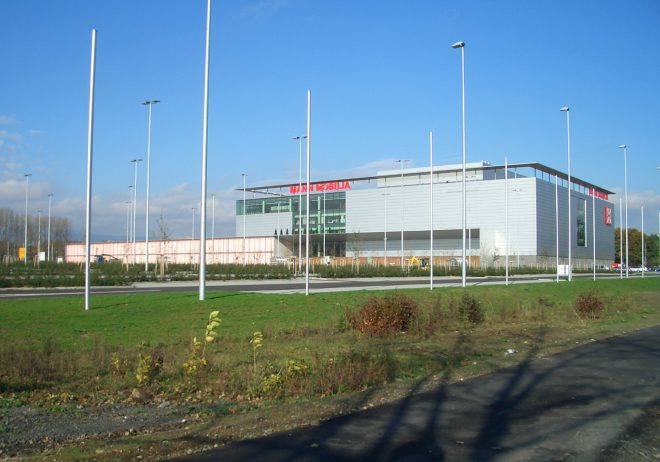 Neubau eines Einrichtungshauses mit Serviceeinrichtungen und Betriebsrestaurant mit 400 Sitzplätzen und Küche.