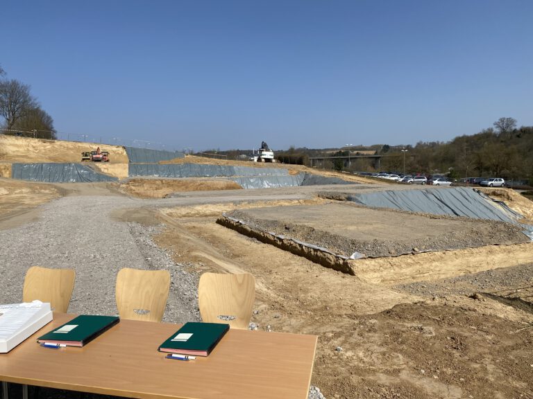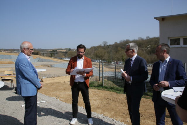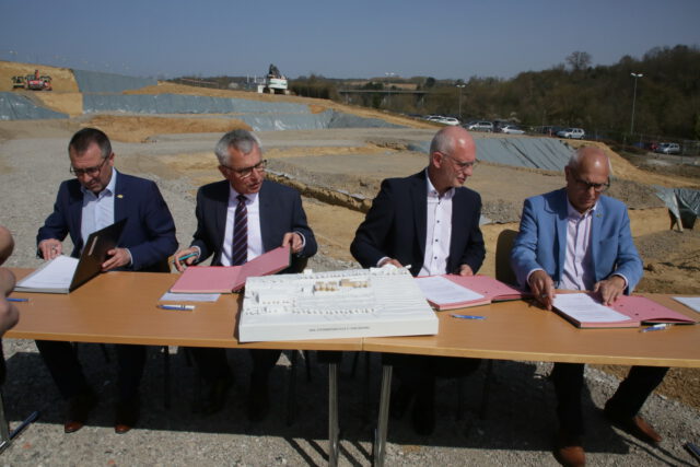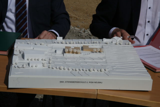 Der Neubau der kreiseigenen Steinsbergschule Sinsheim hat begonnen, die Erdarbeiten sind bereits abgeschlossen. Davon überzeugten sich vor dem Beginn der Rohbauarbeiten bei einem Baustellenbesuch die an diesem Millionenprojekt beteiligten Institutionen, Unternehmen und Personen. Zudem wurden die Kooperationsverträge für den Betrieb des zukünftigen Integrativen Kindergartens zwischen dem Rhein-Neckar-Kreis, der Stadt Sinsheim und der Lebenshilfe e.V. Sinsheim (als zukünftiger Betreiber des Kindergartens), sowie der Mietvertrag zwischen dem Eigenbetrieb Bau, Vermögen und Informationstechnik (EBVIT) und der Lebenshilfe unterzeichnet.